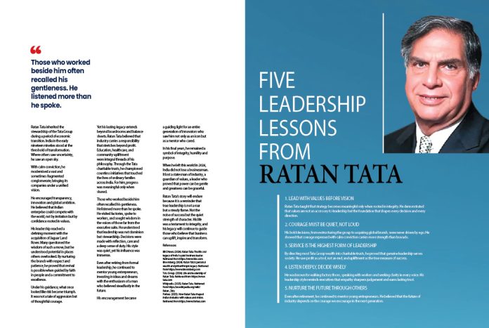 Ratan Tata’s story will endure because it is a reminder that true leadership is not a roar but a steady flame. Not the noise of success but the quiet strength of character. His life was a testament to integrity, and his legacy will continue to guide those who believe that business can uplift, inspire and transform.